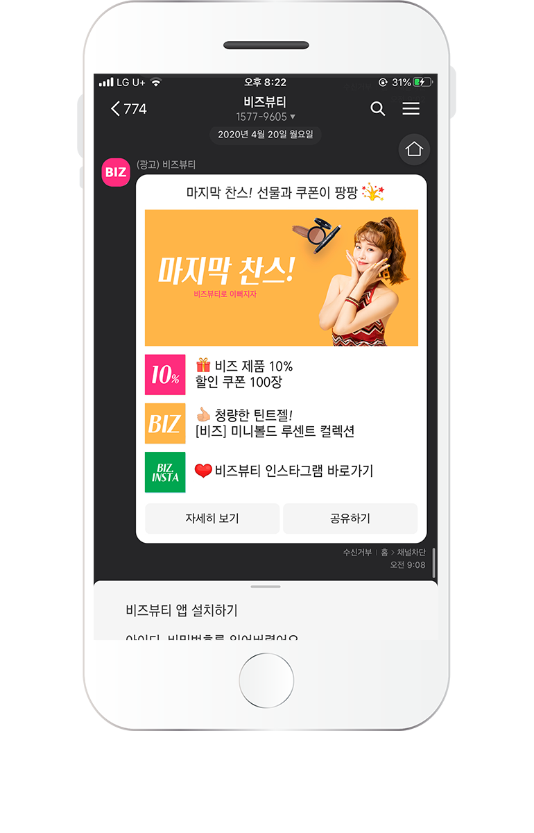 정확한 홍보, 공지, 할인쿠폰등을 카카오 브랜드메시지으로